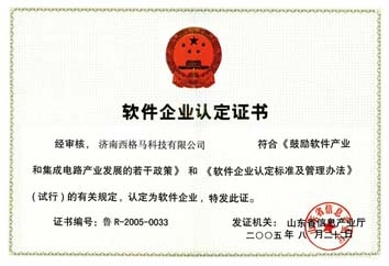 ★ 不但被国家认定为软件企业,还于2008年底与浪潮、海信、海尔、中创等企业同批被山东省重新认定为高新技术企业。